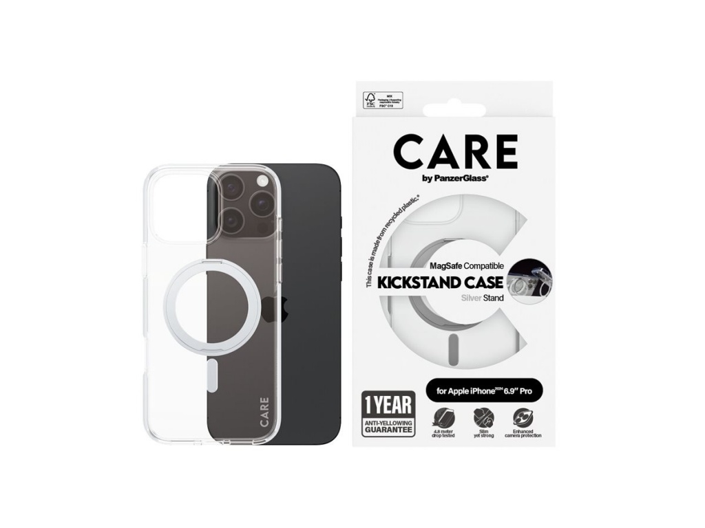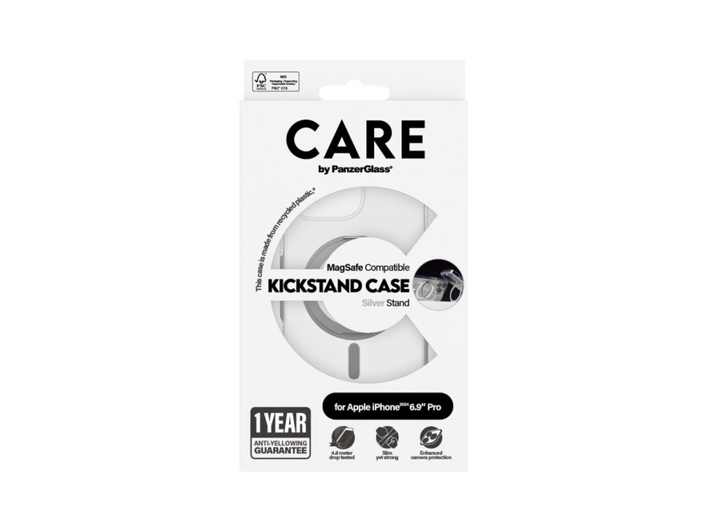 CARE Feature Case | Back cover | Apple | iPhone 16 Pro Max | Recycled plastic | Silver | Kickstand & MagSafe