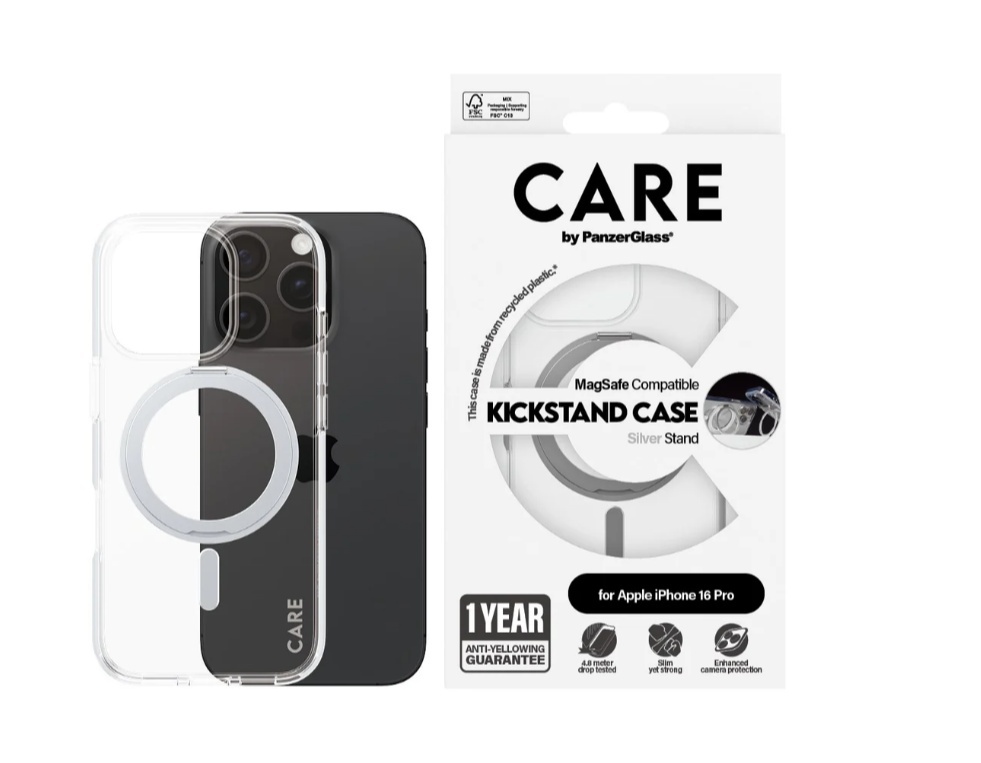 CARE Feature Case | Back cover | Apple | iPhone 16 PRO | Recycled plastic | Silver | Kickstand & MagSafe