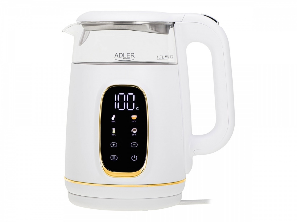Adler Kettle with LED Display | AD 1305 | Electric | 2200 W | 1.7 L | Plastic | 360° rotational base | White/Gold