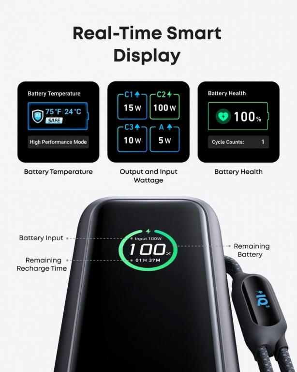 Anker Zolo Powerbank | A1695H11 | 25000 mAh | Built-In USB-C and Retractable Cable) | Grey