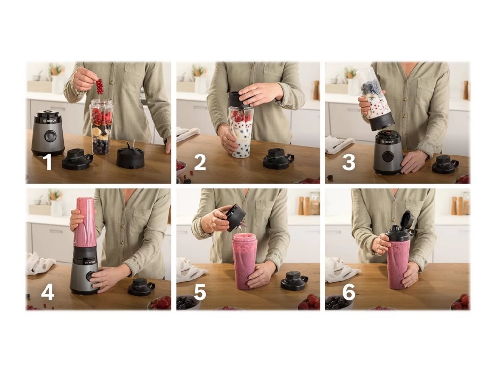 Bosch | VitaPower ToGo Smoothie Maker | MMB2111S | Tabletop | 450 W | Jar material Tritan | Jar capacity 0.6 L | Ice crushing | Silver