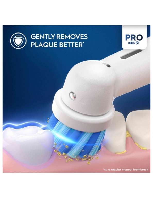Mazāka, speciāli izstrādāta bērna mazajiem zobiem un mutei, birstes galviņa ar īpašiem sariem nodrošina ļoti saudzīgu tīrīšanu.