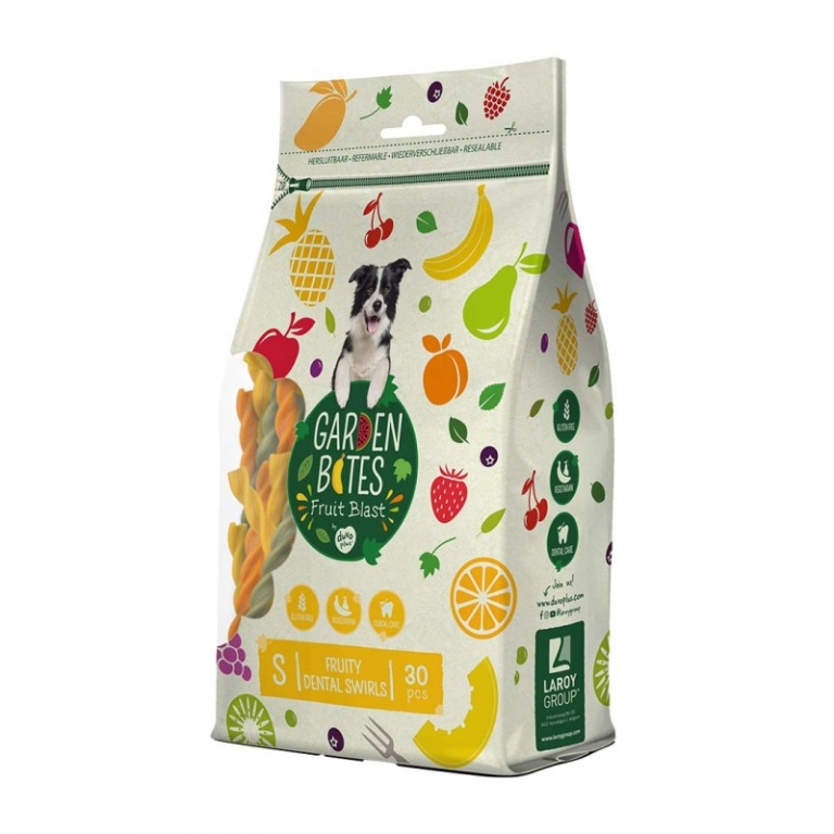 Garden Bites Fruity Dental Swirls S, 30gab/13cm - veģetāras košļājamas spirāles zobiem, ar augļiem
