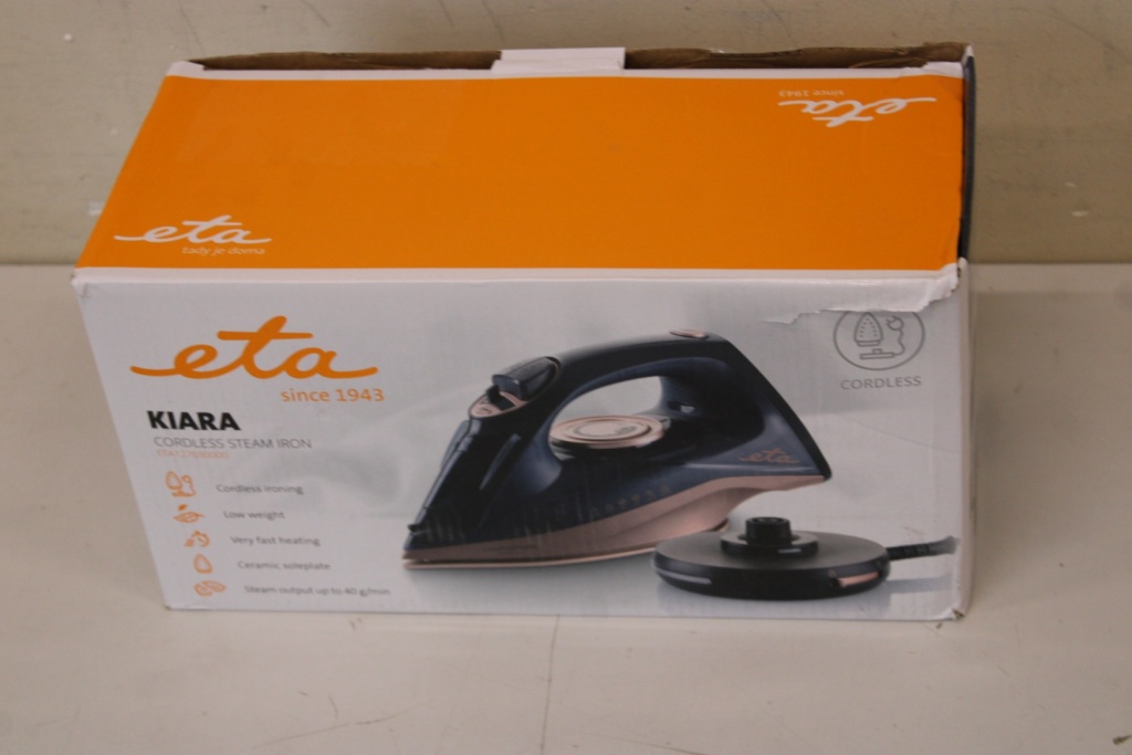 SALE OUT. ETA ETA127690000 Kiara Iron, Ceramic, 2200 W, Water tank 220 ml, Black | ETA | Iron | Kiara ETA127690000 | Cordless Steam Iron | 2200 W | Water tank capacity 220 ml | Continuous steam 40 g/min | Steam boost performance 90 g/min | Black | DAMAGED