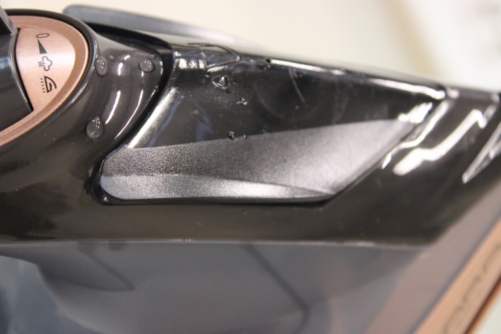 - Saleout: DAMAGED PACKAGING, BROKEN WATER CUP, SCRATCHED, SCRATCHED PAINT FROM FRONT OF IRON