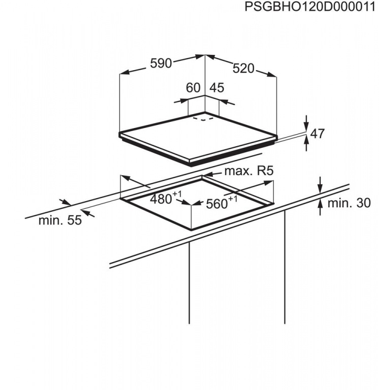 Iebūvēšanas izmēri AxPxD,mm: x560x480