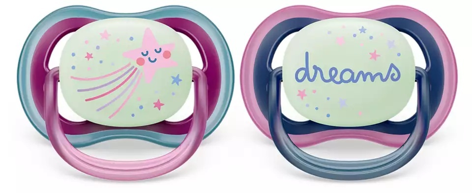 Mierināšana ar gaisa radīto komfortu. Philips Avent ultra air knupītim ir palielinātas atveres, kas saglabā ādu sausu. Tam ir tumsā spīdoša poga, kas padara to redzamu, kad gaismas ir izslēgtas. Pieejams dažādās krāsās un ar dažādiem dizainiem.