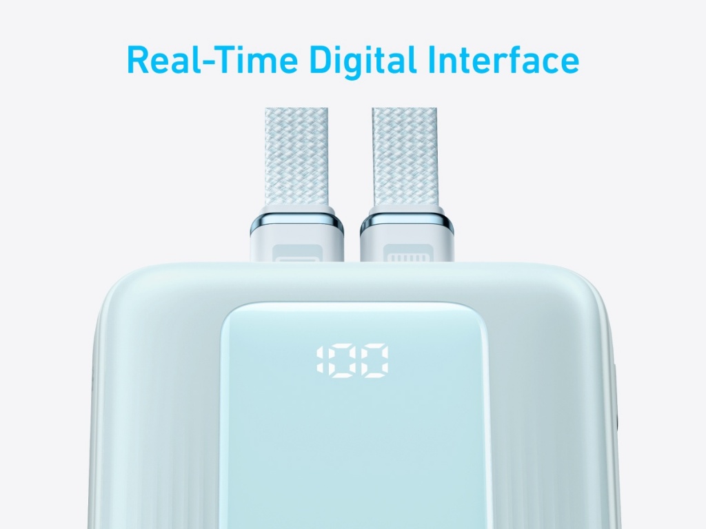Anker Power Bank with Built-In USB-C and + Lighting Cable | A1680031 | 10000 mAh | 30W | Blue