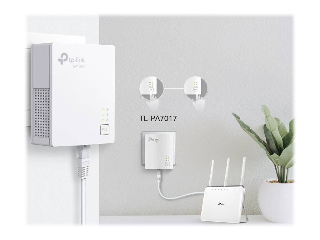 TP-LINK | Gigabit Powerline Starter Kit | TL-PA7017 KIT | 10/100/1000 Mbit/s | Ethernet LAN (RJ-45) ports 1 | No Wi-Fi | Data transfer rate (max) 1000 Mbit/s | Extra socket
