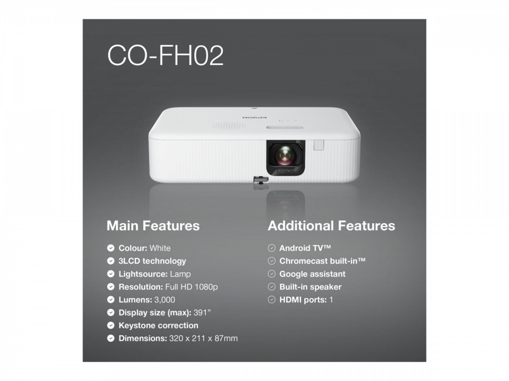 Epson | CO-FH02 | Full HD (1920x1080) | 3000 ANSI lumens | White | Lamp warranty 12 month(s)