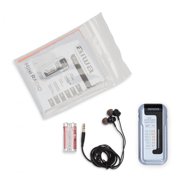 AIWA kabatas radio ar austiņām, pelēks