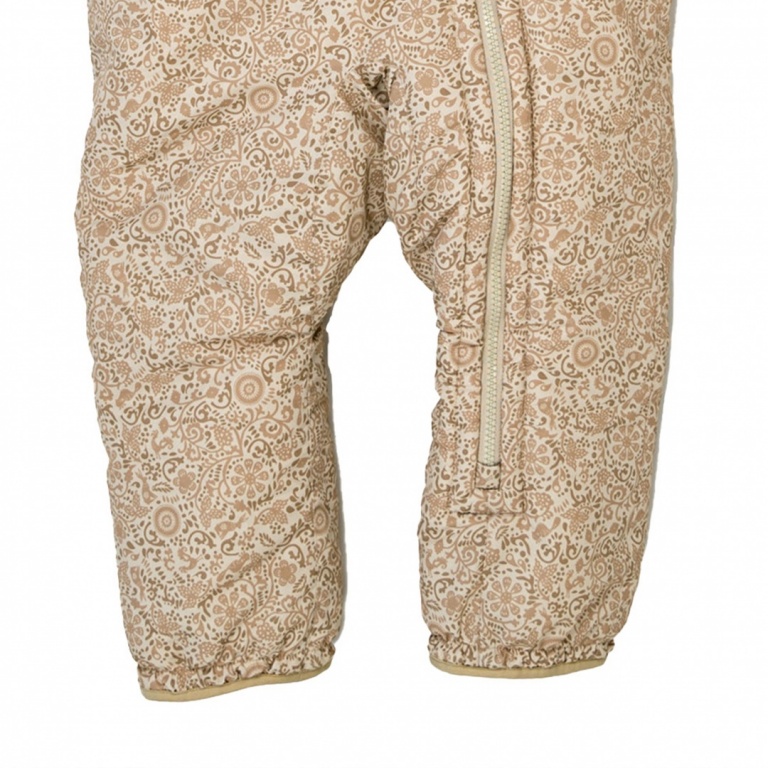 Kombinezona iekšpusē ir iešūts mīksts flīsa materiāls, lai bērnam nodrošinātu maksimālu siltumu un komforta sajūtu. Elastīgā jostasvieta nodrošina ciešu un drošu piegulšanu pie bērna ķermena, lai saglabātu siltumu.