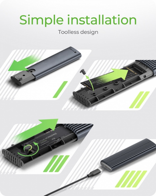 M.2 NVMe and SATA SSD Enclosure via USB Type-C