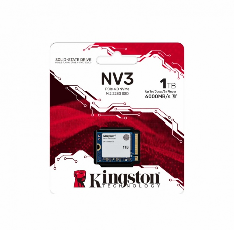 Kingston SSD | NV3 | 1000 GB | SSD form factor M.2 2230 | Solid-state drive interface PCIe 4.0 x4 NVMe | Read speed 6000 MB/s | Write speed 4000 MB/s