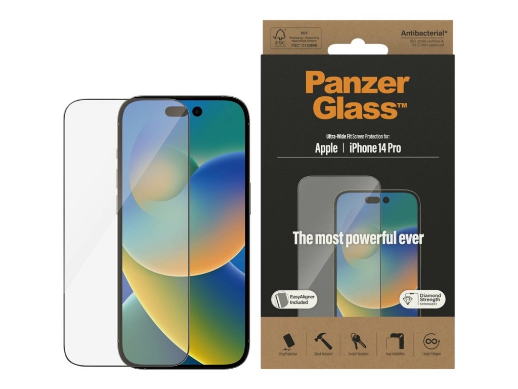 PanzerGlass | Screen protector | Apple | iPhone 14 Pro | Glass | Clear | Ultra-Wide Fit; Easy installation; Fingerprint resistant