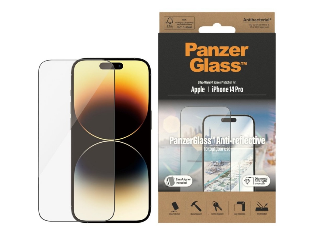 PanzerGlass | Screen protector | Apple | iPhone 14 Pro | Glass | Clear | Ultra-Wide Fit; Easy installation; Privacy Filter; Fingerprint resistant | Anti-Reflective