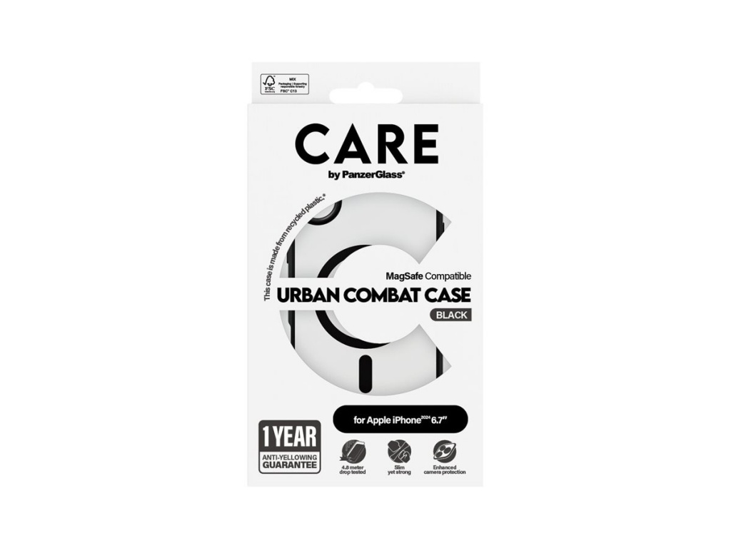 CARE by PanzerGlass Case Flagship Urban Combat | Back protection | Apple | iPhone 16 Plus | Recycled plastic | Transparent/Black | MagSafe