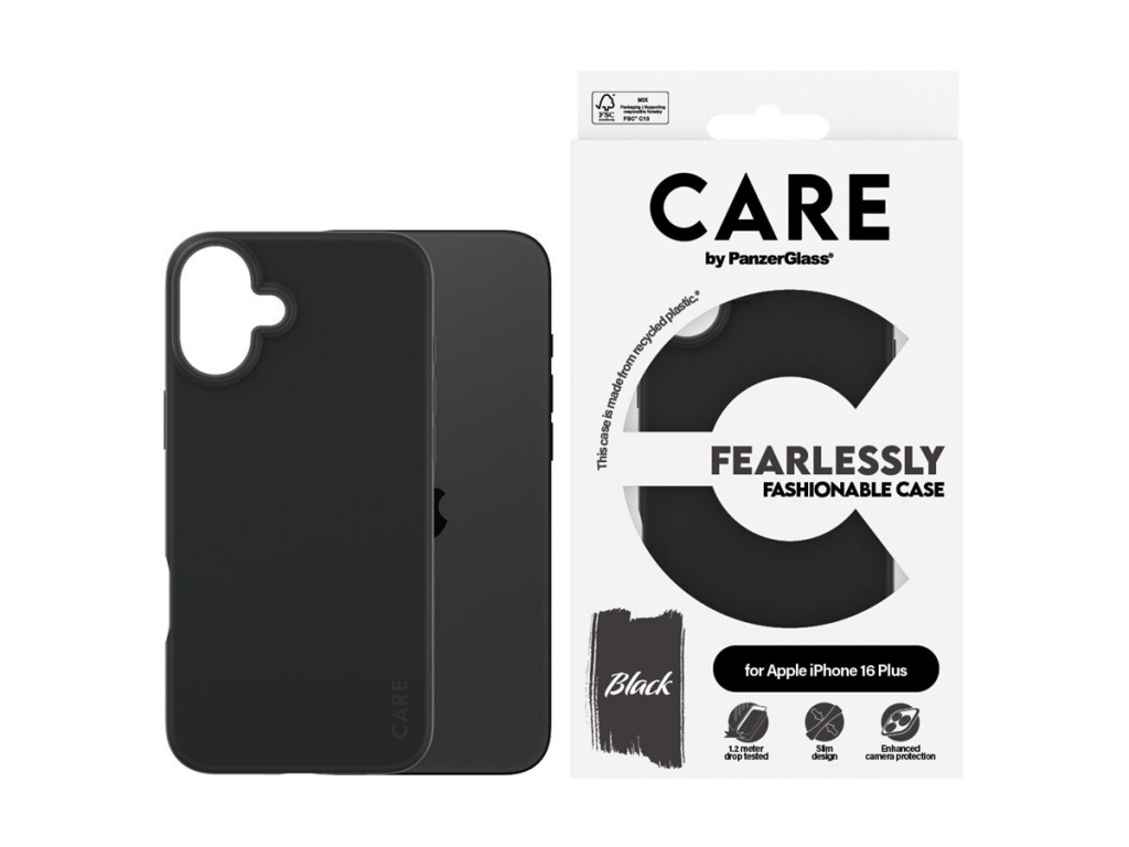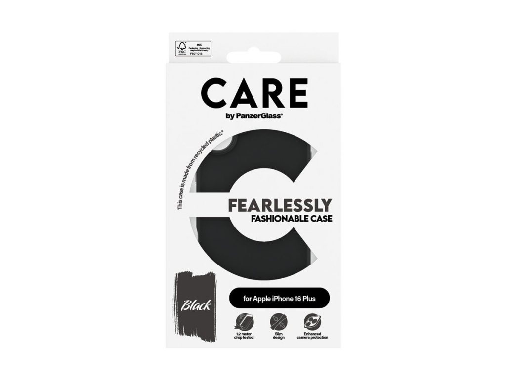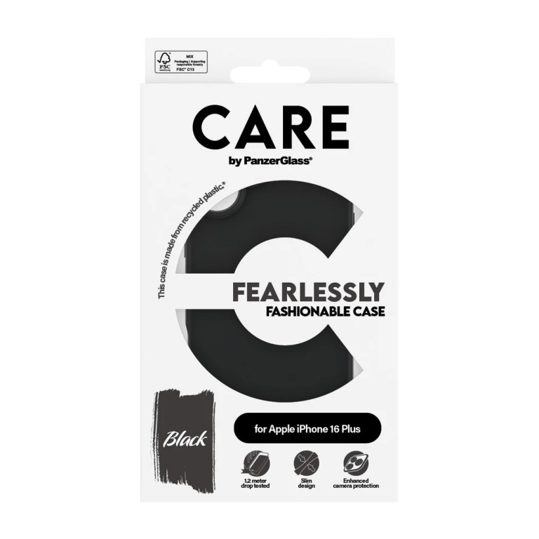 CARE by PanzerGlass Case Fashion | Back protection | Apple | iPhone 16 Plus | Recycled plastic | Black