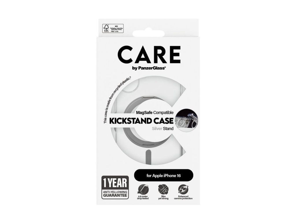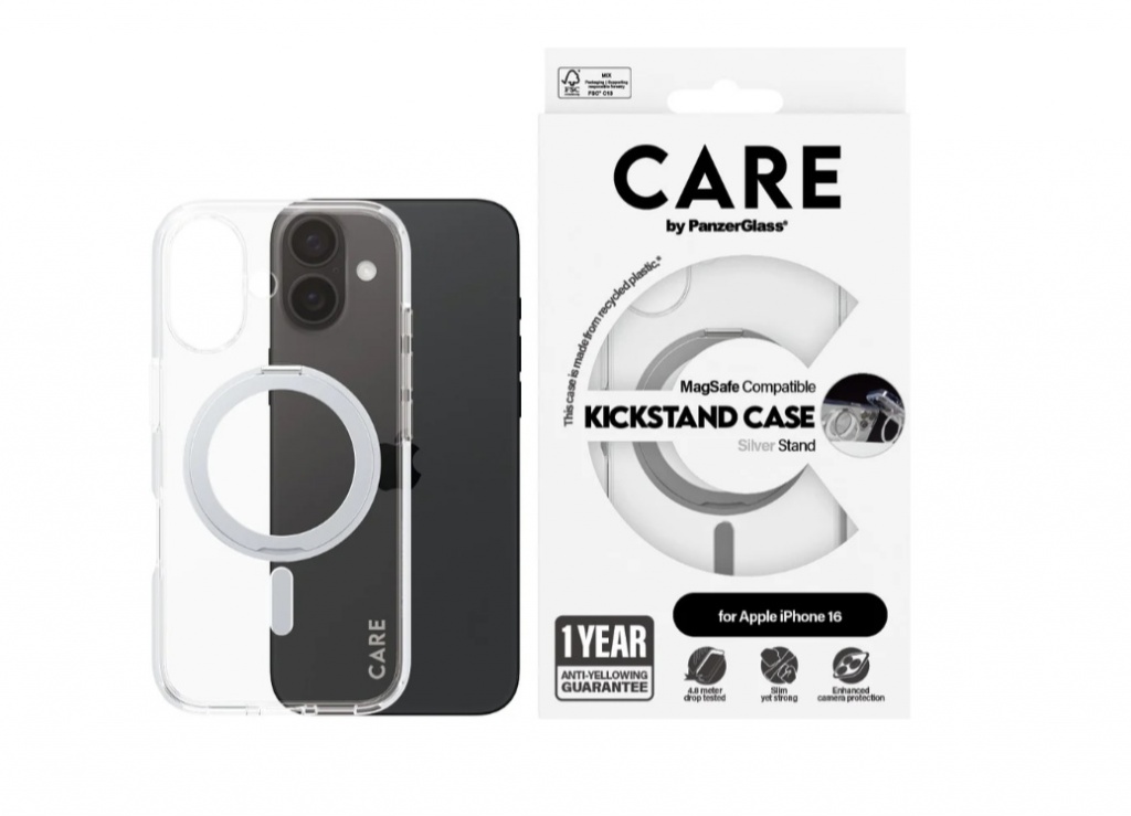CARE Feature Case | Back cover | Apple | iPhone 16 | Recycled plastic | Silver | Kickstand & MagSafe