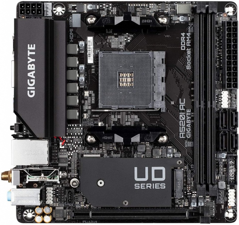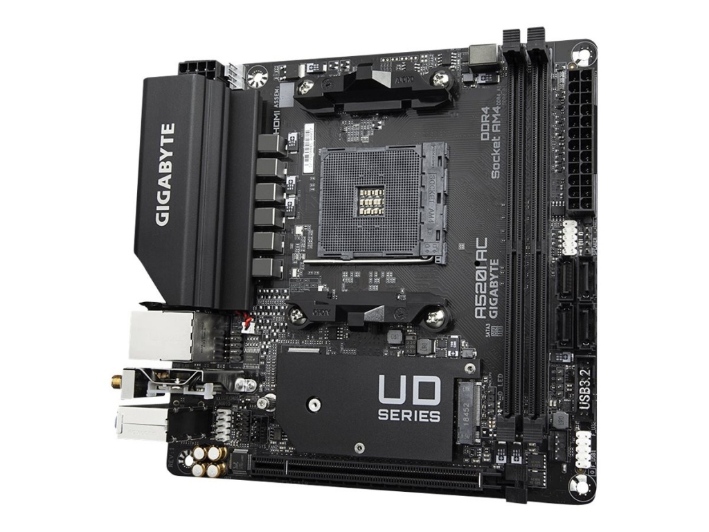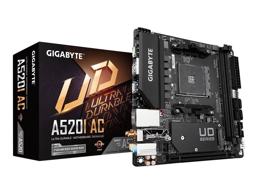 Gigabyte | A520I AC | Processor family AMD | Processor socket AM4 | DDR4 DIMM | Memory slots 2 | Number of SATA connectors 4 | Chipset AMD A | Mini ITX