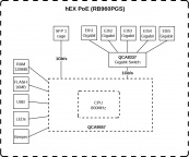 - Другие особенности: hEX PoE is a five port Gigabit Ethernet router for locations where wireless connectivity is not required. The device has a USB 2.0 port and a SFP port for adding optical fiber connectivity. The ports 2-5 can power other PoE capable devices with the same voltage as applied to the unit. It is affordable, small and easy to use, but at the same time comes with a very powerful 800MHz CPU, capable of all the advanced configurations that RouterOS supports. Less power adapters and cables to worry about! Max current is 1A per port, Ethernet ports are shielded. It also supports passive PoE input and passive or 802.3af/at PoE output. Ethernet ports 2-5 can power other PoE capable devices with the same voltage as applied to the unit. Less power adapters and cables to worry about! It can power at/af mode B (4,5+)(7,8-) compatible devices, if 48-57 input voltage is used.
