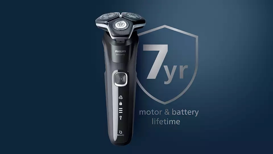 Philips Series 5000 skuveklis palīdz efektīvi noskūties, tagad ar katru kustību nogriežot vēl vairāk matiņu*. Ar uzlaboto SkinIQ tehnoloģiju aprīkotais skuveklis konstatē matiņu biezumu un tam pielāgojas, ādai sniedzot vairāk komforta.