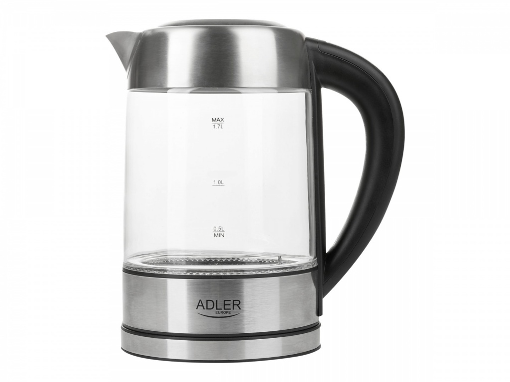 Adler Kettle AD 1247 With electronic control, Stainless steel, glass, Stainless steel/Transparent, 1850 - 2200 W, 360° rotational base, 1.7 L