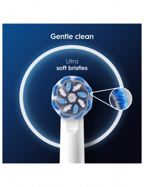 Oral-B Pro Sensitive Clean zobu birstei ir īpaši mīksti sariņi, kuri saudzē smaganas, un parastie sariņi, kuri efektīvi notīra aplikumu. Tā noņem līdz pat 100 % vairāk aplikuma un samazina smaganu iekaisumus par 100 % salīdzinājumā ar manuālo zobu birsti. Oral-B unikālie zobu birstes uzgaļi ir izstrādāti ar jauniem X formas sariņiem, kas piekļūst grūti aizsniedzamām vietām. Tās uzgaļa nolietojuma indikatora sariņi maina krāsu no zaļas uz dzeltenu, atgādinot, ka jānomaina uzgalis, lai saglabātu 100 % tīrīšanas efektivitāti. Garantēta saderība ar visiem Oral-B uzlādējamo elektrisko zobu birstu rokturiem, izņemot Pulsonic un iO.
