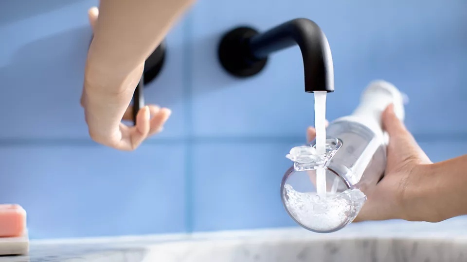 250 ml tvertnē ir pietiekami daudz ūdens ieteicamajai 60 sekunžu tīrīšanai. Vienkārši pagrieziet un noņemiet vai izmantojiet sānu uzpildes atveri, lai to viegli uzpildītu.