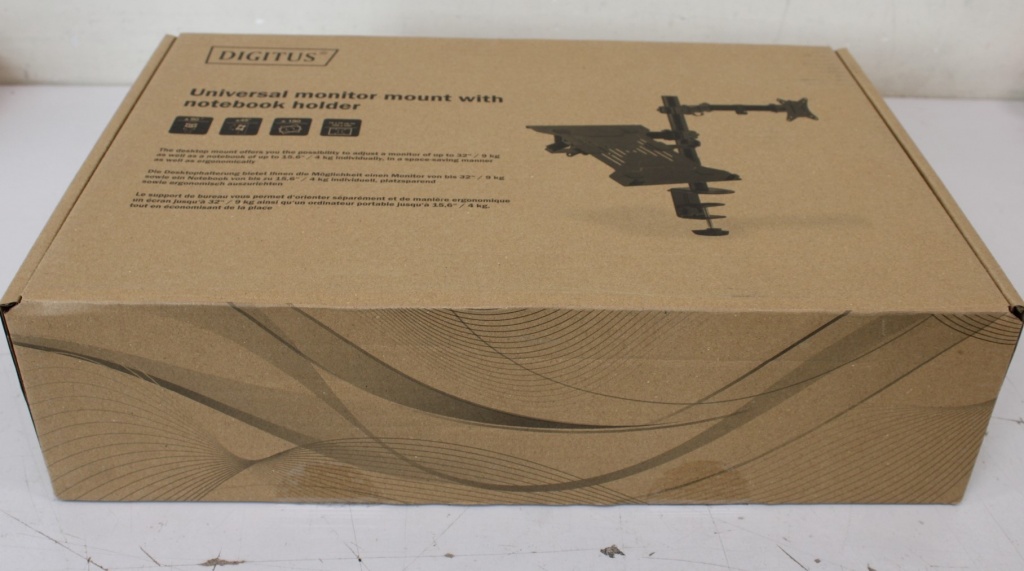 SALE OUT. DIGITUS Universal Monitor Mount with Notebook Holder | SALE OUT. Digitus Desk Mount | DA-90436 | Tilt, swivel, height adjustment, rotate | Maximum weight (capacity) 9 kg | UNPACKED, SCRATCHED ON TUBE | Black