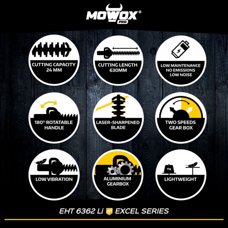 MoWox | 62V Excel Series Hand Held Battery Hedge Trimmer With Rotating Handle (Without Battery and Charger) | EHT 6362 Li | Cordless