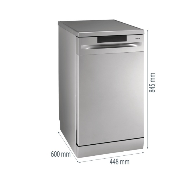 Dishwasher | GS520E15S | Free standing | Width 45 cm | Number of place settings 9 | Number of programs 5 | Energy efficiency class E | Display | AquaStop function | Grey