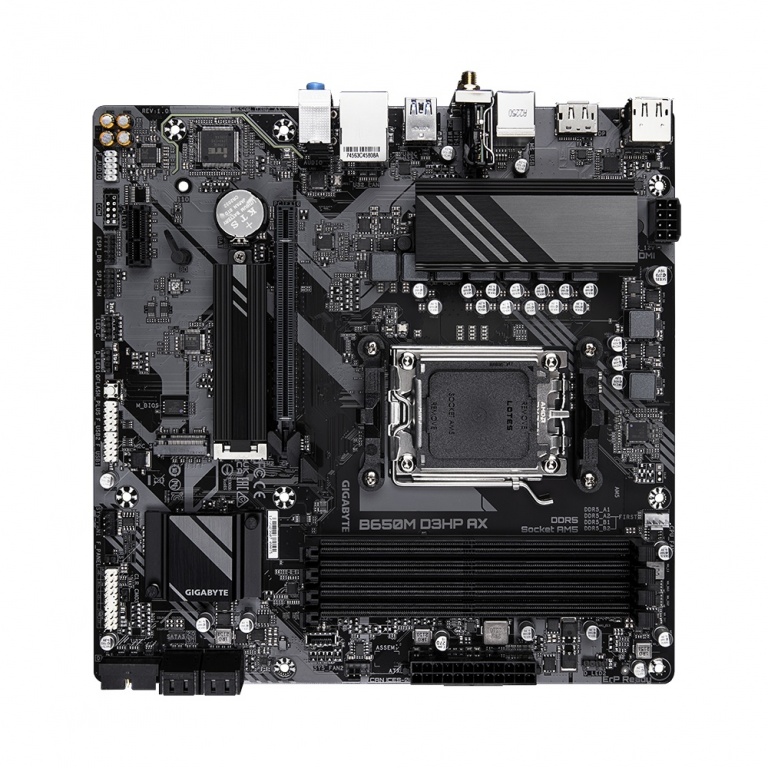 Gigabyte | B650M D3HP AX 1.0 M/B | Processor family AMD | Processor socket AM5 | DDR5 | Supported hard disk drive interfaces SATA, M.2 | Number of SATA connectors 4