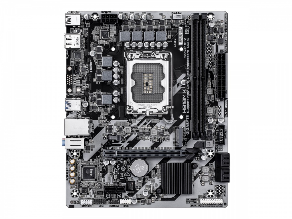 Gigabyte H810M K | Processor family Intel | Processor socket LGA1851 | DDR5 | Supported hard disk drive interfaces M.2, SATA | Number of SATA connectors 4