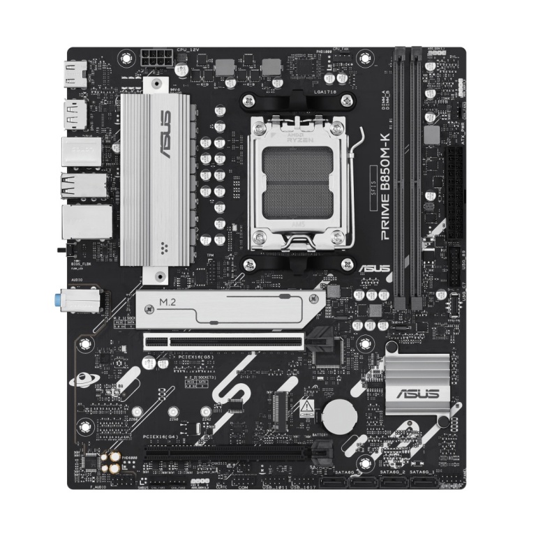 Asus PRIME B850M-K | Processor family AMD | Processor socket AM5 | DDR5 | Supported hard disk drive interfaces SATA, M.2 | Number of SATA connectors 4