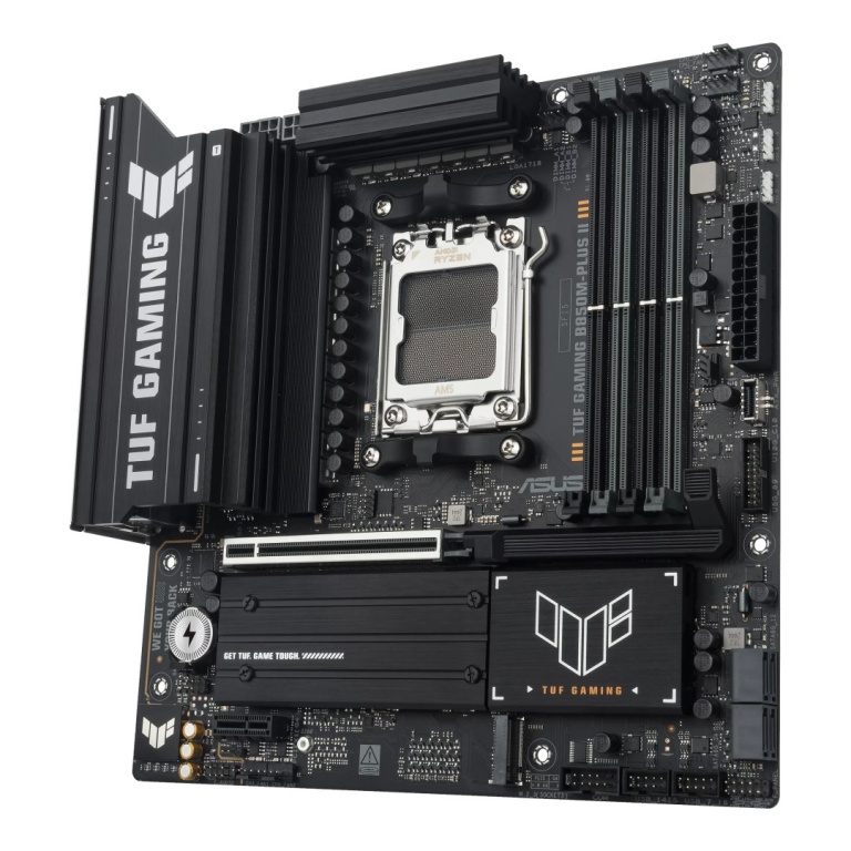 Asus TUF GAMING B850M-PLUS II | Processor family AMD | Processor socket AM5 | DDR5 | Supported hard disk drive interfaces SATA, M.2 | Number of SATA connectors 4