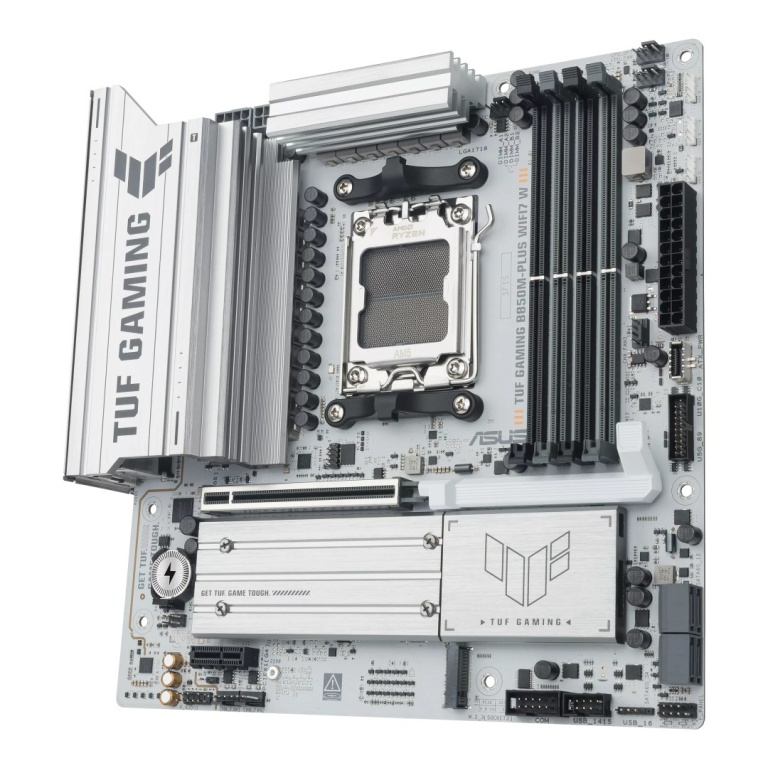 Asus TUF GAMING B850M-PLUS WIFI7 W | Processor family AMD | Processor socket AM5 | DDR5 | Supported hard disk drive interfaces SATA, M.2 | Number of SATA connectors 4