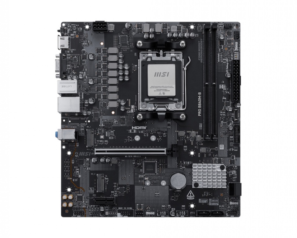MSI PRO B840M-B | Processor family AMD | Processor socket AM5 | DDR5 | Supported hard disk drive interfaces SATA, M.2 | Number of SATA connectors 4
