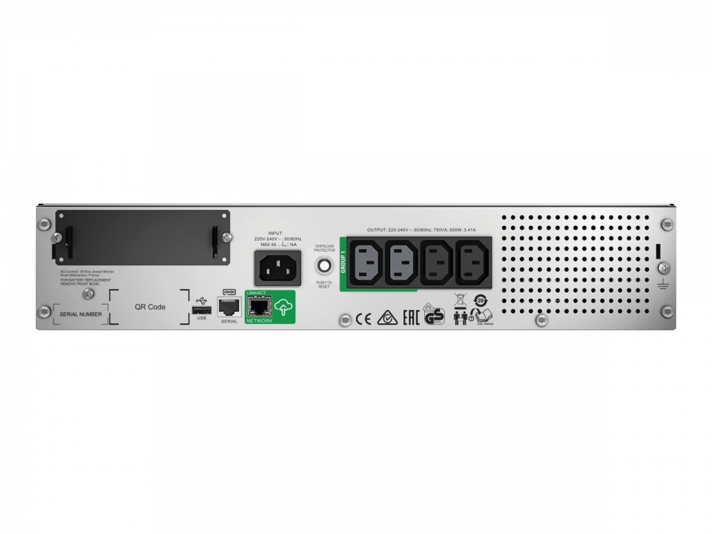 Schneider Electric Smart-UPS, Rackmount 2U, SmartConnect port+SmartSlot, AVR, LCD | SMT750RMI2UC | 750 VA | 500 W