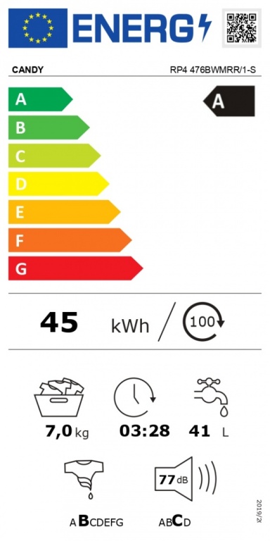 Candy | Washing Machine | RP4 476BWMRR/1-S | Energy efficiency class A | Front loading | Washing capacity 7 kg | 1400 RPM | Depth 45 cm | Width 60 cm | Display | TFT | Steam function | Wi-Fi | Anthracite