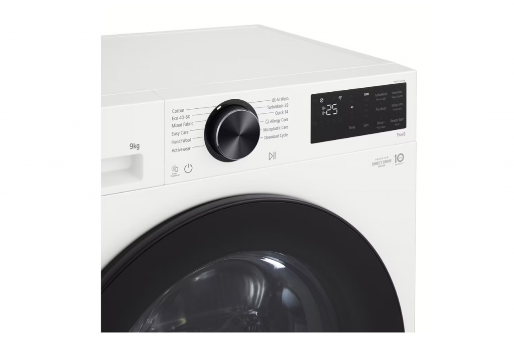 LG Washing machine | F2X50S9TWB | Energy efficiency class A | Front loading | Washing capacity 9 kg | 1200 RPM | Depth 48 cm | Width 60 cm | Display | LED | Steam function | Direct drive | Wi-Fi | White