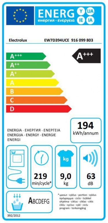 Produkta klase: veļas žāvētājs