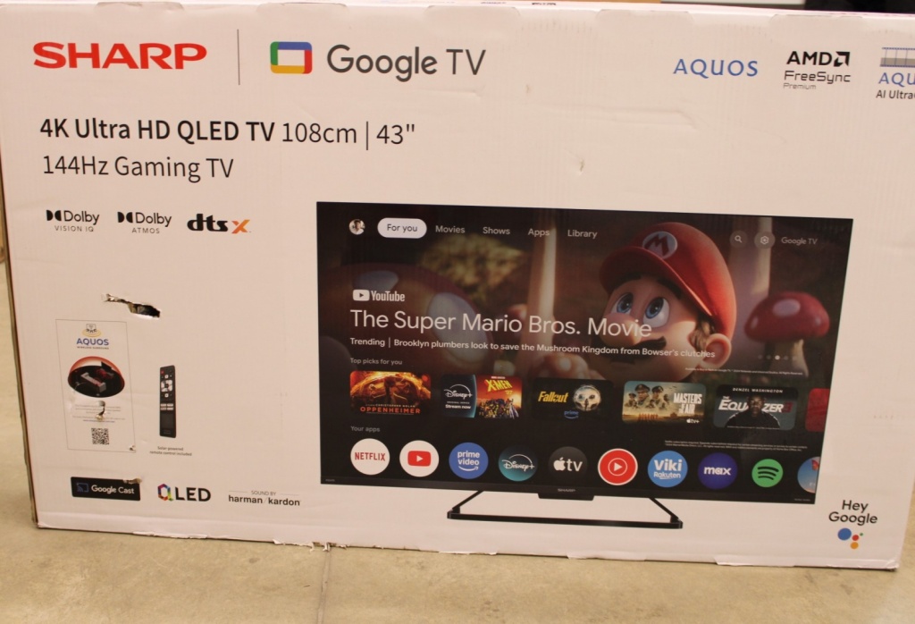 SALE OUT. Sharp 43GR8265E 43” (108cm) 4K Ultra HD QLED Smart Google Frameless TV, 144Hz, Dolby Vision IQ, Dolby Atmos, Harman/Kardon | Sharp | 43GR8265E | 43" | Smart TV | Google TV | 4K Ultra HD | DAMAGED PACKAGING