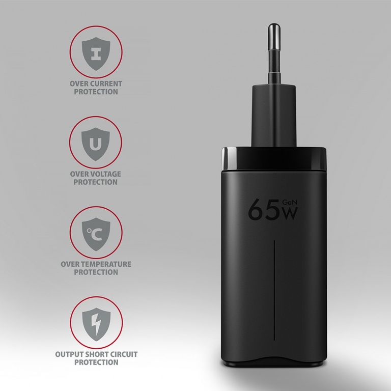 AXAGON GaN wallcharger 3x port (USB-A + 2x USB-C), 65W | ACU-DPQ65